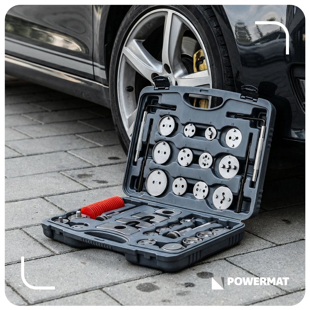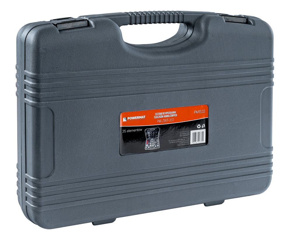 Set za prešanje kočionih klipova, 35 komada | PM-ZWT-35T sadrži praktične alate za servisiranje kočionog sustava u vašem automobilu. Zahvaljujući 35 dijelova, uključujući adaptere i preše za desnu i lijevu stranu, možete ga prilagoditi mnogim modelima. Dobivate precizan rad, lakšu ugradnju kočionih pločica i uštedite vrijeme bez rizika od oštećenja. Zahvaljujući 28 adaptera, alat možete jednostavno prilagoditi različitim kočionim čeljustima. Dobivate univerzalno rješenje i ne gubite vrijeme kombinirajući neprikladne dijelove.
