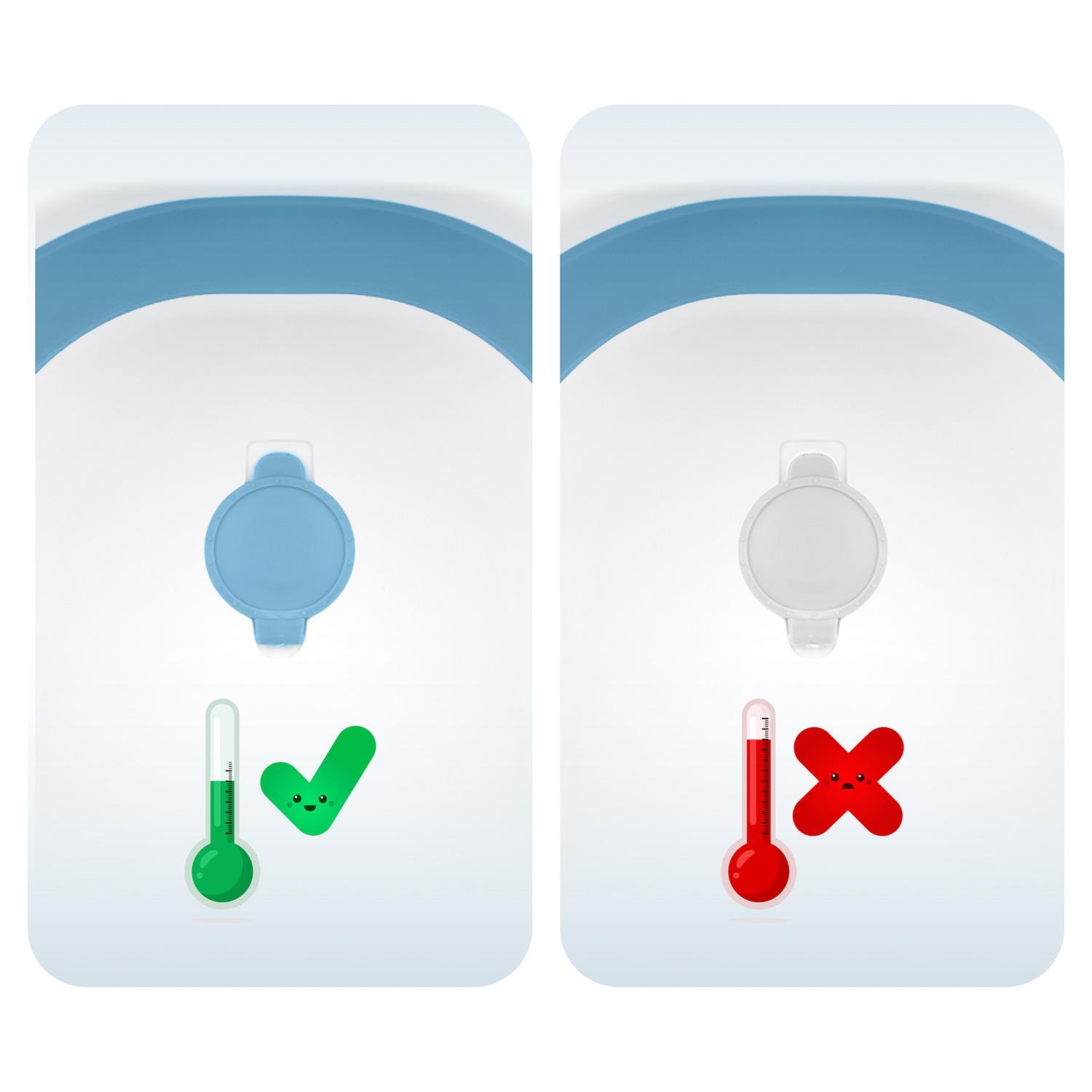- Čep mijenja boju kada je izložen vodi temperature iznad 38 stupnjeva