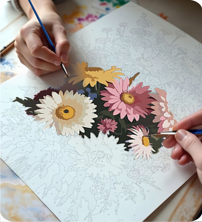 Slika po brojevima, 40x50cm, cvijeće | Massido je set koji vam omogućuje opuštanje dok ispunjavate okvire bojama i stvarate vlastito umjetničko djelo. Vesel, šareni uzorak odličan je izbor i za velike i za male umjetnike koji žele otkriti radost slikanja. Idealno za provođenje kreativnog vremena s obitelji i stvaranje jedinstvenog umjetničkog djela punog boja!