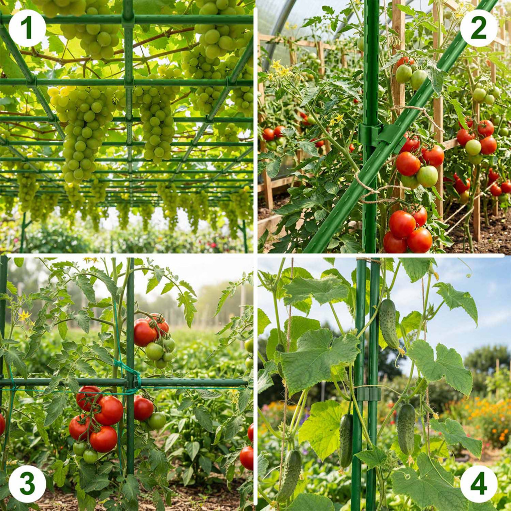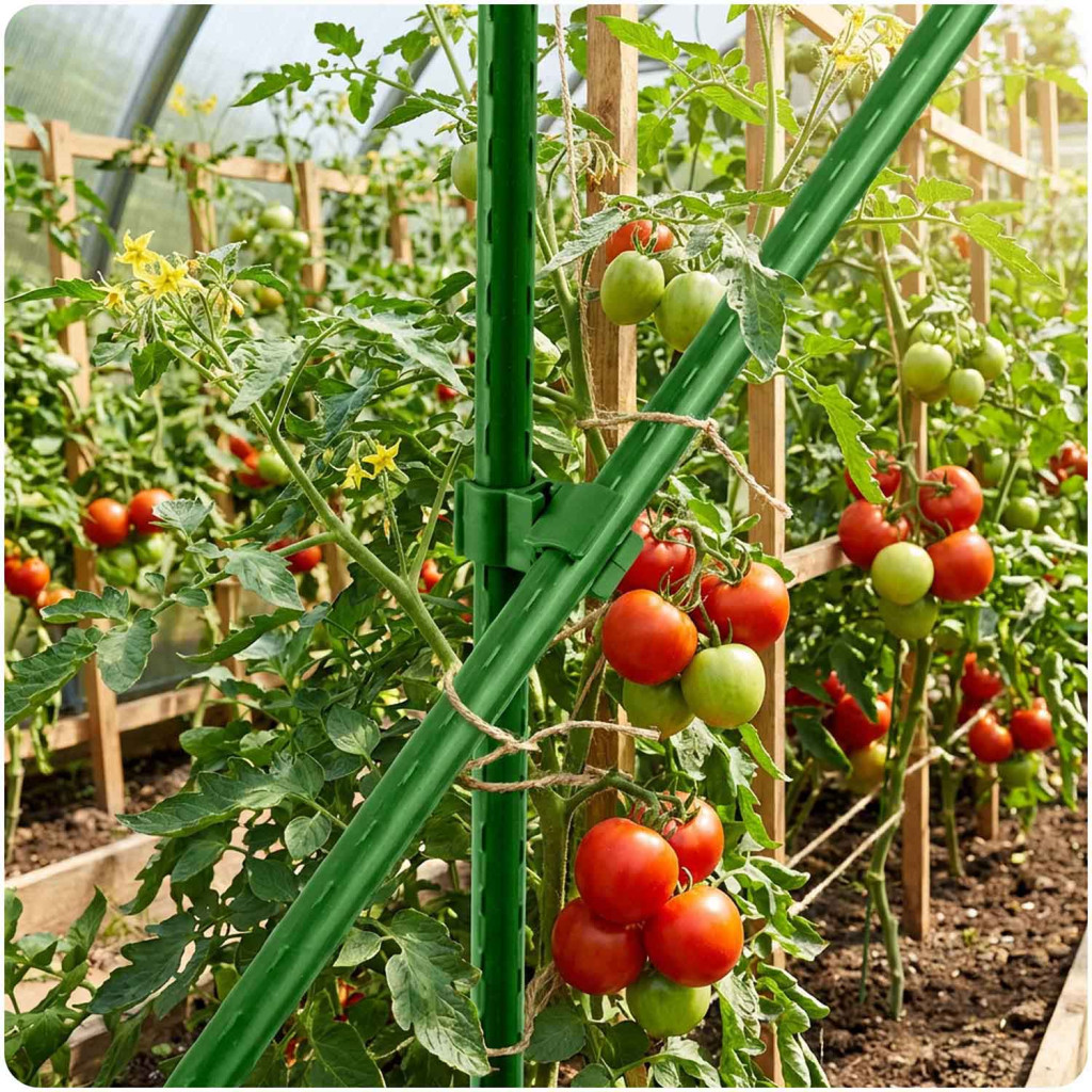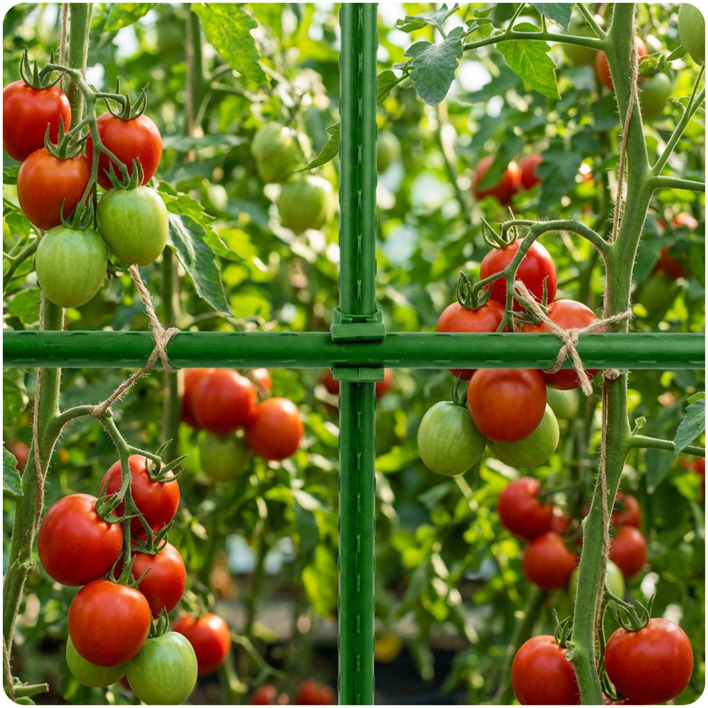 Pakiranje sadrži 10 komada, što omogućuje fleksibilnu prilagodbu i proširenje potpornih struktura po potrebi. Izdržljivi plastični materijal osigurava malu težinu, jednostavno rukovanje i dugotrajnu upotrebu čak i na otvorenom. Spojnice također omogućuju jednostavno rastavljanje konstrukcije nakon sezone i njezinu ponovnu upotrebu, što štedi vrijeme i troškove.