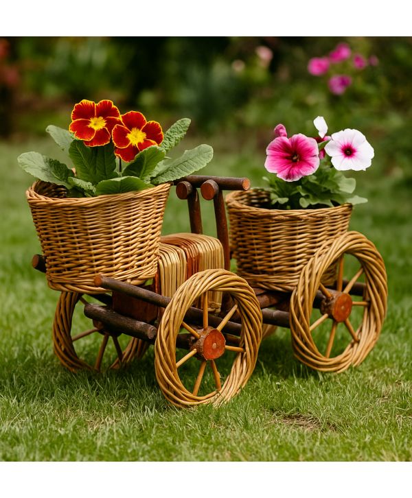 Staljak za cvjetne posude, 75 cm | bager je originalan ukrasni stalak izrađen od prirodne vrbe koji će oživjeti vaš vrt, terasu i interijer. Izrađen je od prirodne vrbe, što mu daje prirodan izgled i uklapa se u različite stilove života – od rustikalnog do modernog. Njegov nekonvencionalni oblik u obliku bagera privući će pažnju i stvoriti zanimljiv vizualni element od običnog cvijeća. Konstrukcija omogućuje stabilno skladištenje cvjetnih posuda i jednostavno postavljanje, na primjer, na cvjetnu gredicu, travnjak ili terasu. Dekoraciju možete koristiti ne samo za uzgoj cvijeća, već i kao stilski element koji će prostoru dati razigran i prirodan karakter.