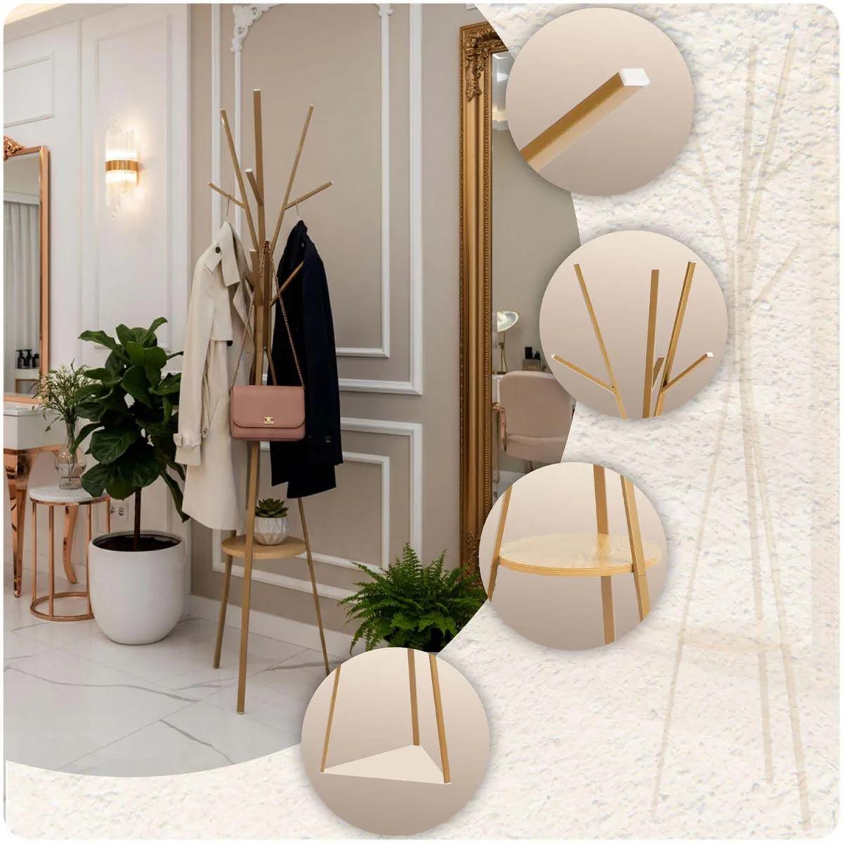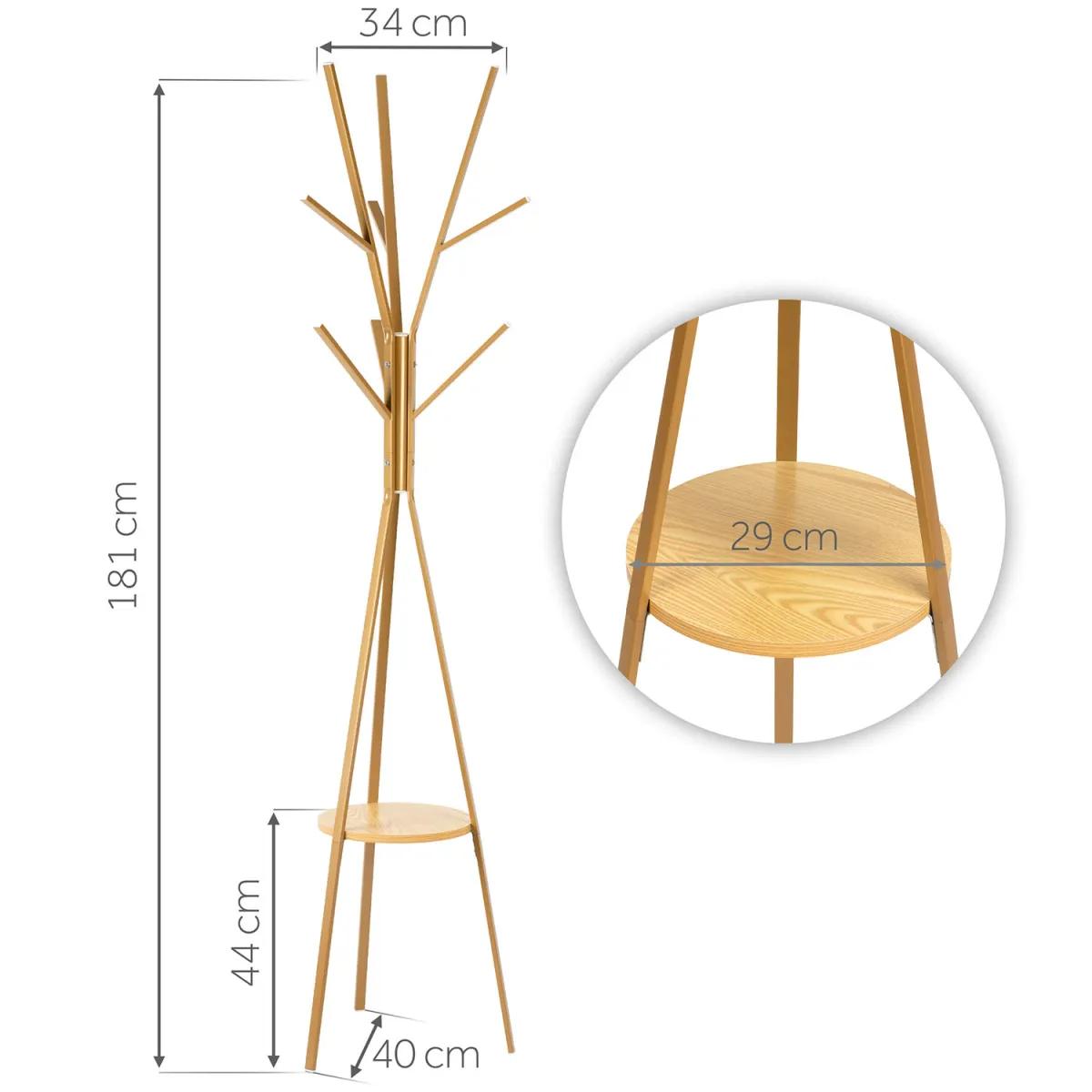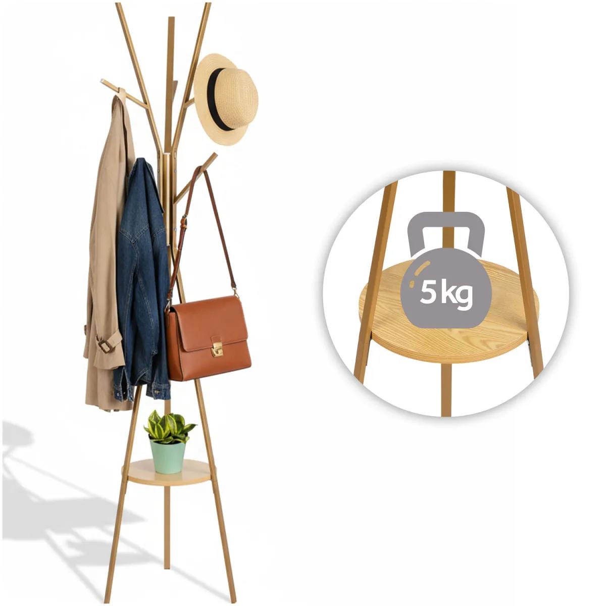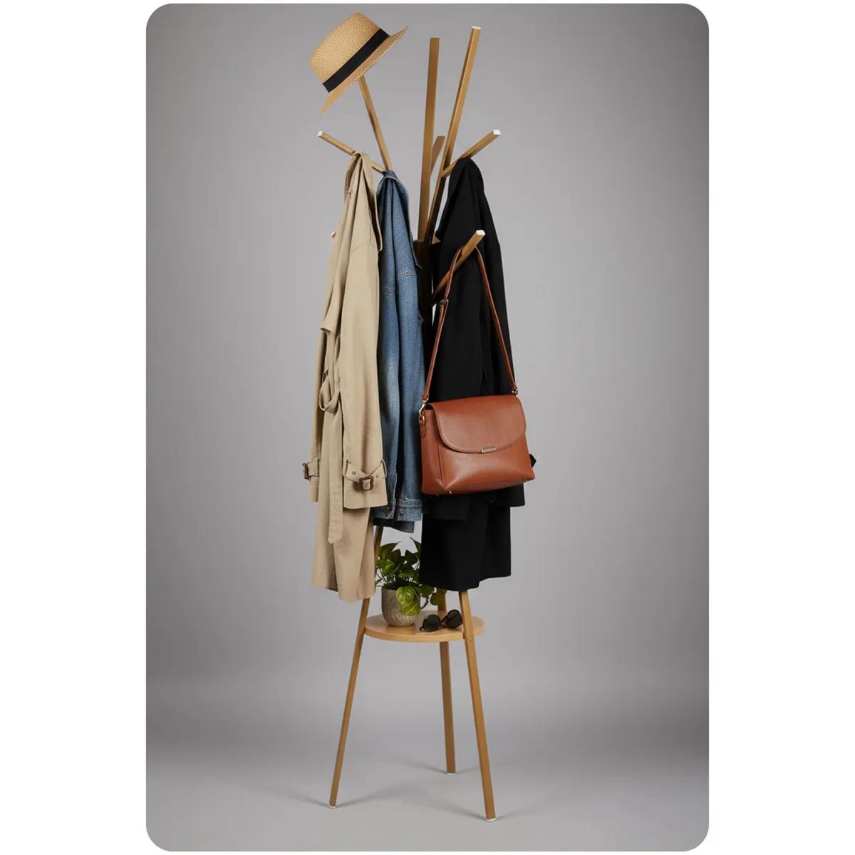 Stojeća vješalica za odjeću MS-869, drvena | Massido pruža praktično rješenje za vješanje odjeće s dodatnom policom za modne dodatke. Vješalica nudi praktično rješenje za organizaciju ormara ili predsoblja – ima nekoliko kuka za kapute, jakne, torbe ili kape, a opremljena je i policom za male predmete poput rukavica, kapa ili ukrasa. Čvrsta konstrukcija osigurava stabilnost, dok se jednostavan dizajn lako integrira u različite stilove interijera.