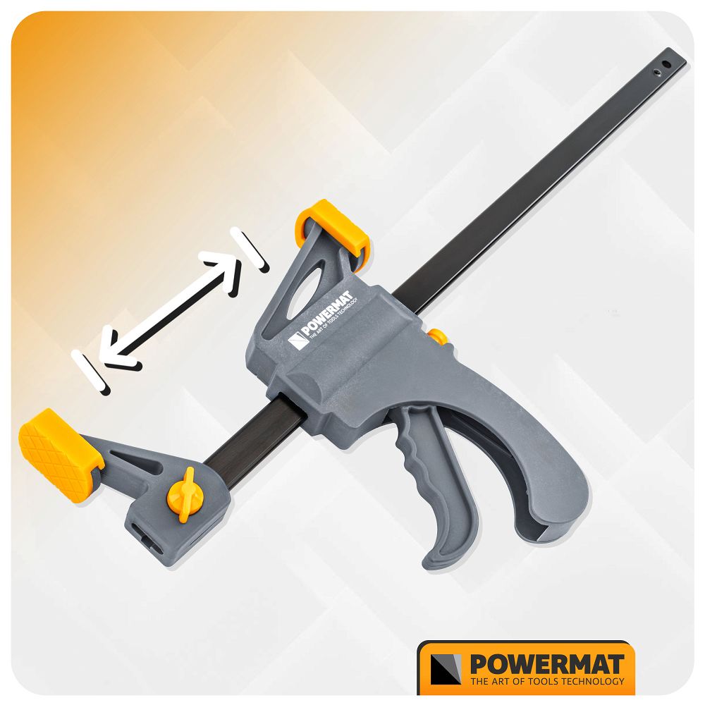 Ugrađeni gumb za brzo otpuštanje omogućuje trenutno podešavanje kraka stezaljke, smanjujući vrijeme pripreme alata. Ovaj mehanizam radi glatko i omogućuje trenutno podešavanje otvora. Visokokvalitetni materijali korišteni u vodilici i mehanizmu jamče izdržljivost i otpornost na intenzivnu upotrebu. Dizajn stezaljke ostaje stabilan čak i pod visokim pritiskom.