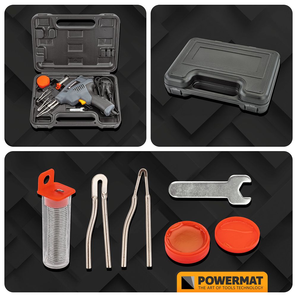 Set uključuje 3 vrha koji vam omogućuju prilagodbu alata specifičnim zadacima. Zahvaljujući tome, moguće je postići čiste i trajne spojeve bez obzira na opseg projekta ili vrstu materijala. Osim 3 zamjenjiva vrha, set također uključuje torbicu za nošenje, kositar i kolofonij, što alat čini potpuno spremnim za hobi i profesionalnu upotrebu te vam omogućuje da odmah počnete lemiti nakon raspakiranja.