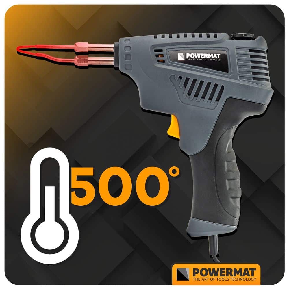 Lemila doseže temperaturu od 500 °C, što omogućuje učinkovito lemljenje još debljih žica i metalnih elemenata. Visoka temperatura jamči trajnost i pouzdanost spoja čak i u zahtjevnim radioničkim uvjetima. Uređaj radi u načinima rada 70–200 °C, 200–300 °C i 300–500 °C, što vam daje potpunu kontrolu nad procesom lemljenja. Korisnik može podesiti temperaturu prema vrsti lema i debljini elemenata koji se leme.