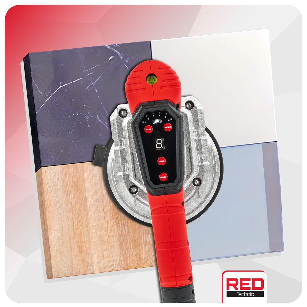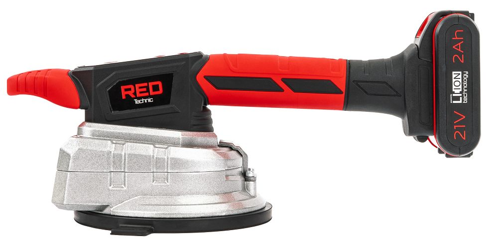 Vibrirajuća vakuumska čašica za pločice RTAPW0155, 21V | RED TECHNIC nudi usisnu silu do 100 kg s podesivim vibracijama za precizno pozicioniranje pločica. Vakuumska čašica idealna je za postavljanje pločica, staklarsku industriju, građevinarstvo i stolarstvo. Dizajnirana je za pomicanje i postavljanje glatkih površina – od pločica i stakla do laminatnih ploča – nezamjenjiv je pomoćnik čak i za profesionalce.