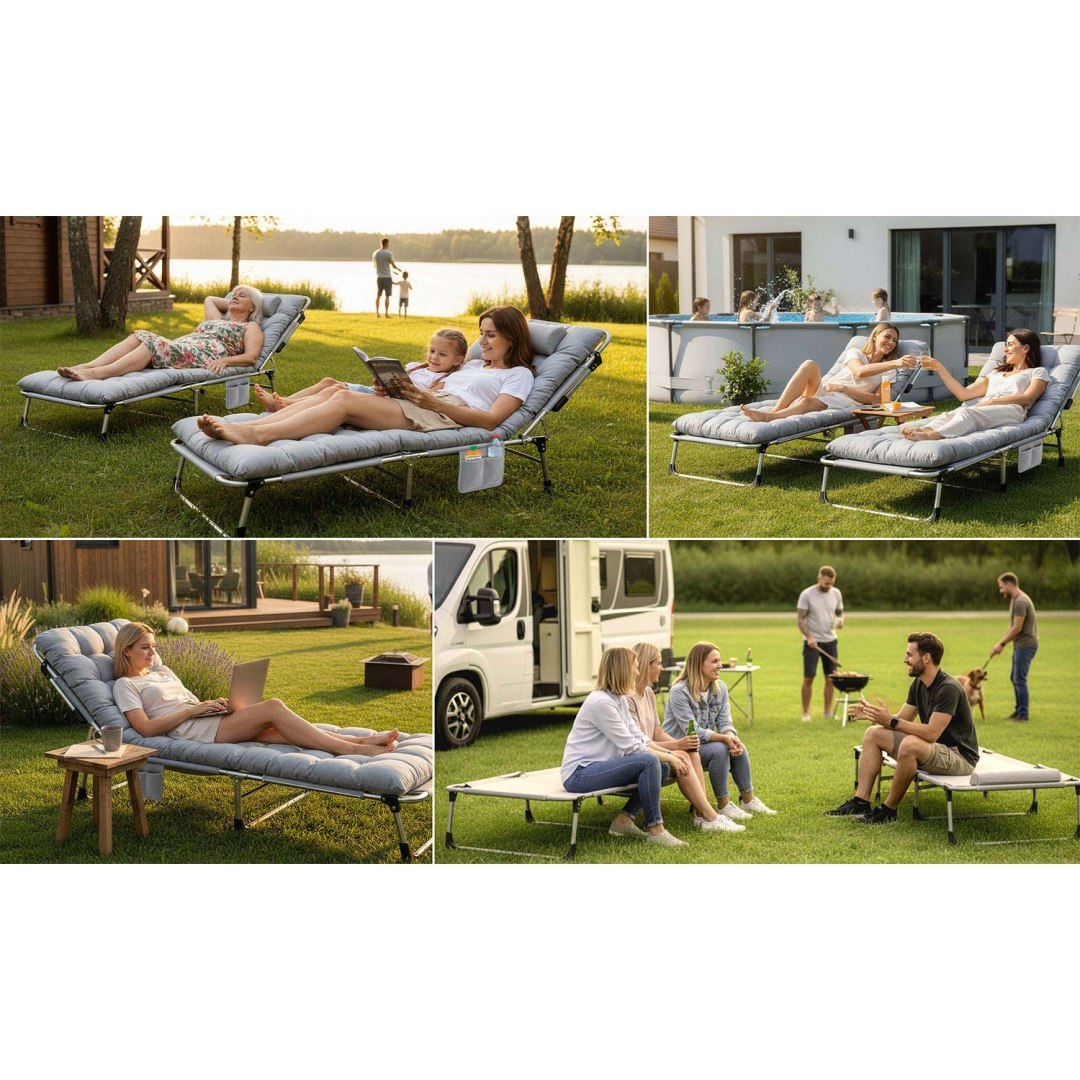 Čvrsta i stabilna konstrukcija osigurava pouzdanu upotrebu tijekom svakodnevnog opuštanja. Podesivi naslon omogućuje vam postavljanje optimalnog položaja sjedenja i ležanja prema vašim trenutnim potrebama. Površina ležaljke pruža dovoljnu udobnost za opuštanje, sunčanje i kratki odmor tijekom dana. Korišteni materijali mogu podnijeti uobičajene vanjske uvjete i omogućuju jednostavno održavanje. Površina ležaljke pruža dovoljnu udobnost bez potrebe za dodatnim priborom, dok konstrukcija ostaje lagana i lako prenosiva.
