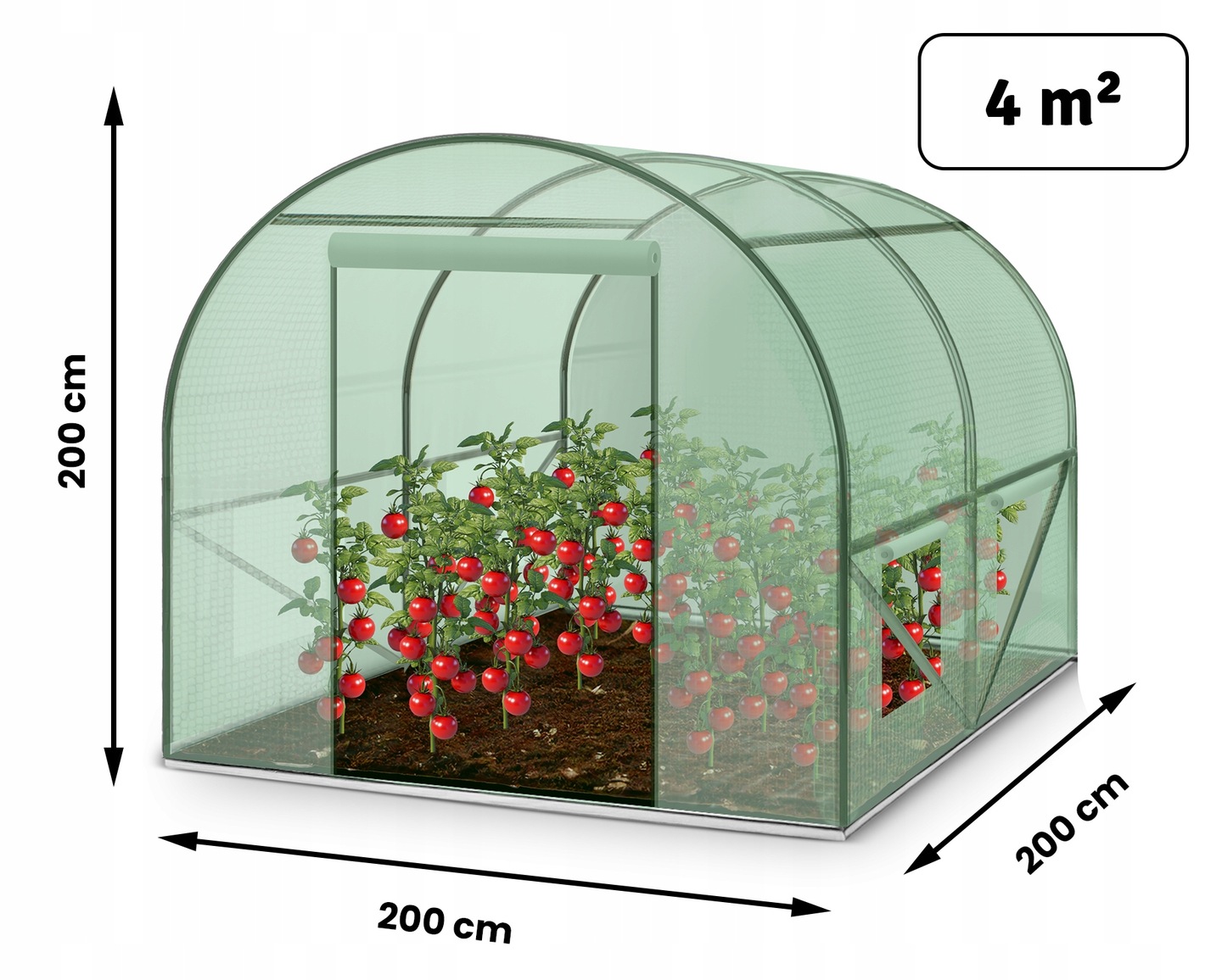 Vrtni staklenik 2x2m, zeleni | 4m2 savršeno je rješenje za vaš kućni vrt. Ima brojne prednosti koje ga čine idealnim za uzgoj biljaka. Omogućuje vam održavanje optimalnih uvjeta za biljke, posebno tijekom razdoblja niskih temperatura ili oblačnosti, poput ranih sorti povrća. Izrađen je od čvrste čelične konstrukcije, što osigurava visoku stabilnost i otpornost na vanjske utjecaje.