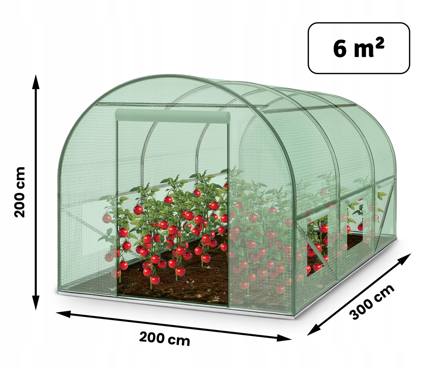 Vrtni staklenik 3x2m, zeleni | 6m2 savršeno je rješenje za vaš kućni vrt. Ima brojne prednosti koje ga čine idealnim za uzgoj biljaka. Omogućuje vam održavanje optimalnih uvjeta za biljke, posebno tijekom razdoblja niskih temperatura ili oblačnosti, poput ranih sorti povrća. Izrađen je od čvrste čelične konstrukcije, što osigurava visoku stabilnost i otpornost na vanjske utjecaje.