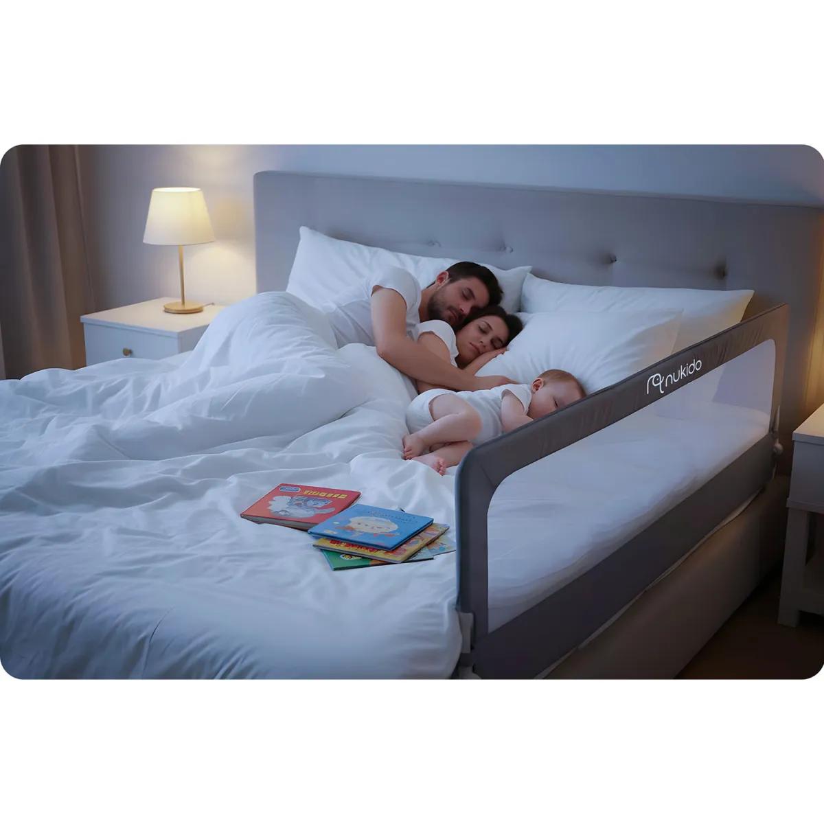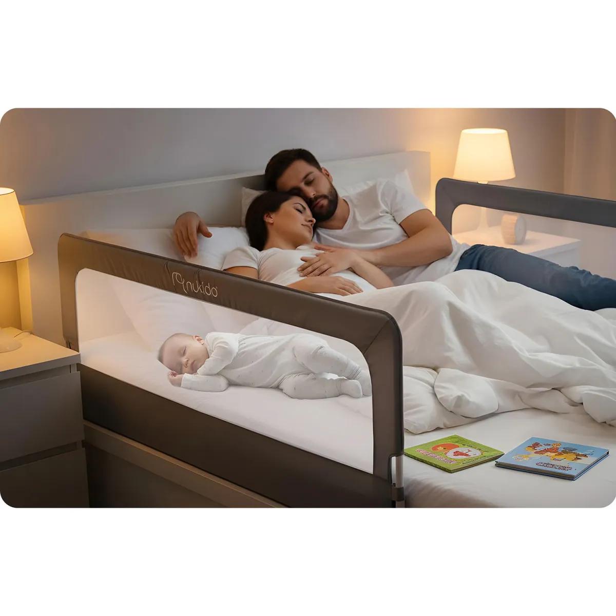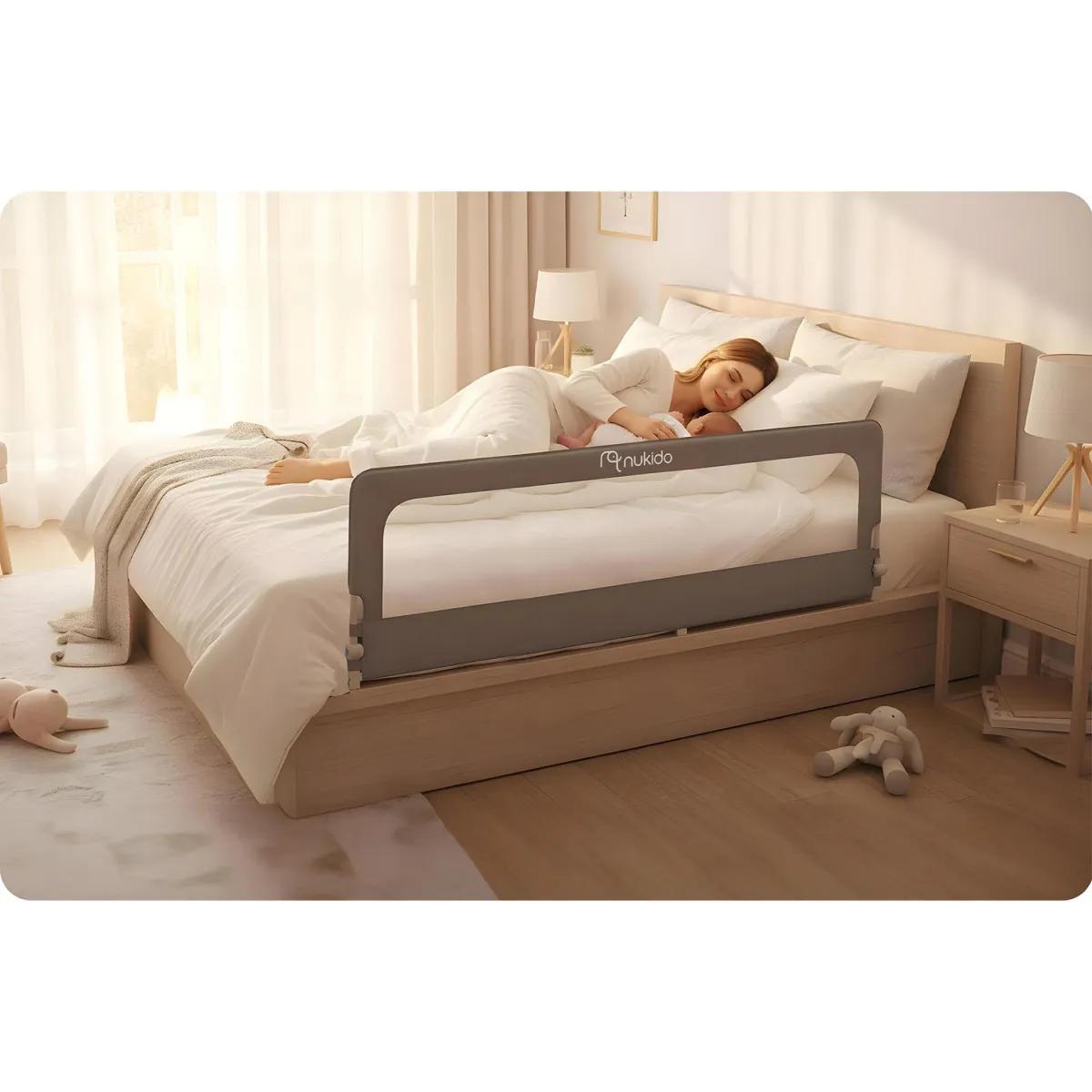 Zaštita za krevet NK-228, 180 cm, siva | Nukido učinkovito štiti od padova, daje vašem djetetu slobodu, a vama sigurnost da je sigurno. Dizajn naglašava stabilnost i jednostavnu montažu – zaštita je čvrsto pričvršćena za okvir kreveta bez potrebe za složenim alatima, a izdržljivi materijali osiguravaju dugotrajnu upotrebu.